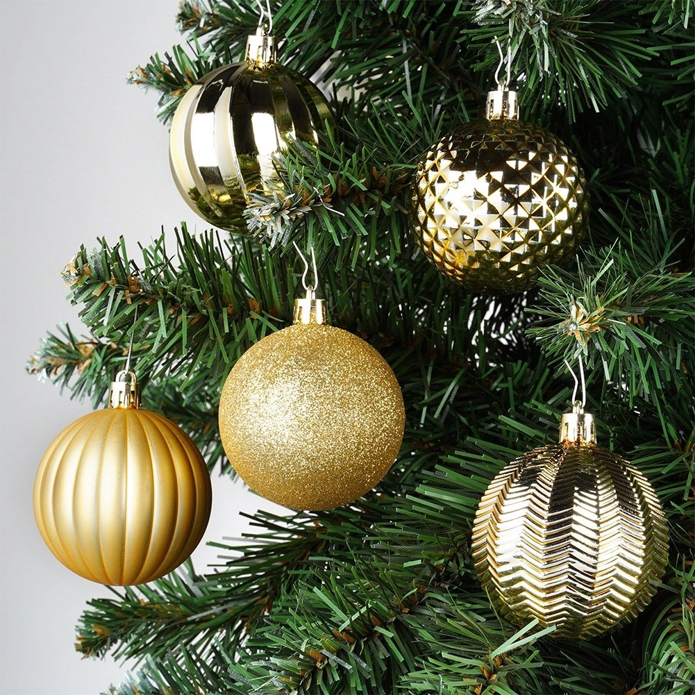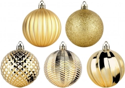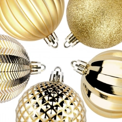 Z tym zestawem w kilka chwil stworzysz harmonijną, świąteczną aranżację. Złoto w różnych fakturach doda choince i wnętrzu luksusowego blasku i głębi, a trwałe wykonanie z wysokiej jakości plastiku zapewni długą żywotność bez ryzyka stłuczenia.