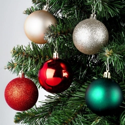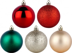 W opakowaniu znajdziesz starannie dobrane kombinacje dla łatwego dekorowania: czerwone matowe i błyszczące, szampańskie matowe i brokatowe oraz zielone matowe bombki. Dzięki jednolitej średnicy 6 cm doskonale się komponują i wypełniają choinkę od czubka po dolne gałązki.
