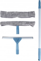 Ten 4‑częściowy zestaw do mycia okien jest idealny do domów, biur i ogrodów zimowych. Teleskopowy kij o zakresie 50–95 cm umożliwia bezpieczne czyszczenie bez drabiny, mikrofibra skutecznie pochłania zabrudzenia, a woda jest szybko zbierana gumową ściągaczką, co zapewnia kryształowo czyste okna bez smug.