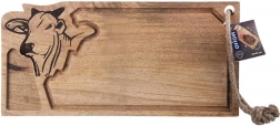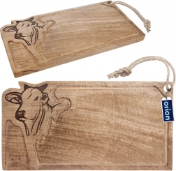 Grawerowana głowa byka nadaje desce oryginalny charakter, a mocny sznurek umożliwia łatwe zawieszenie i oszczędność miejsca.