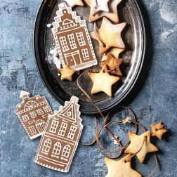 Stwórz piękne piernikowe domki i gwiazdki, które ozdobią stół i choinkę. Świetna do świątecznego tworzenia z dziećmi.