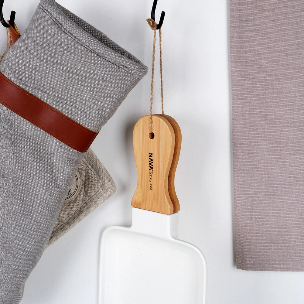 Zintegrowany bambusowy uchwyt z oczkiem i sznurkiem zapewnia pewny chwyt podczas przenoszenia oraz umożliwia praktyczne zawieszenie po użyciu.