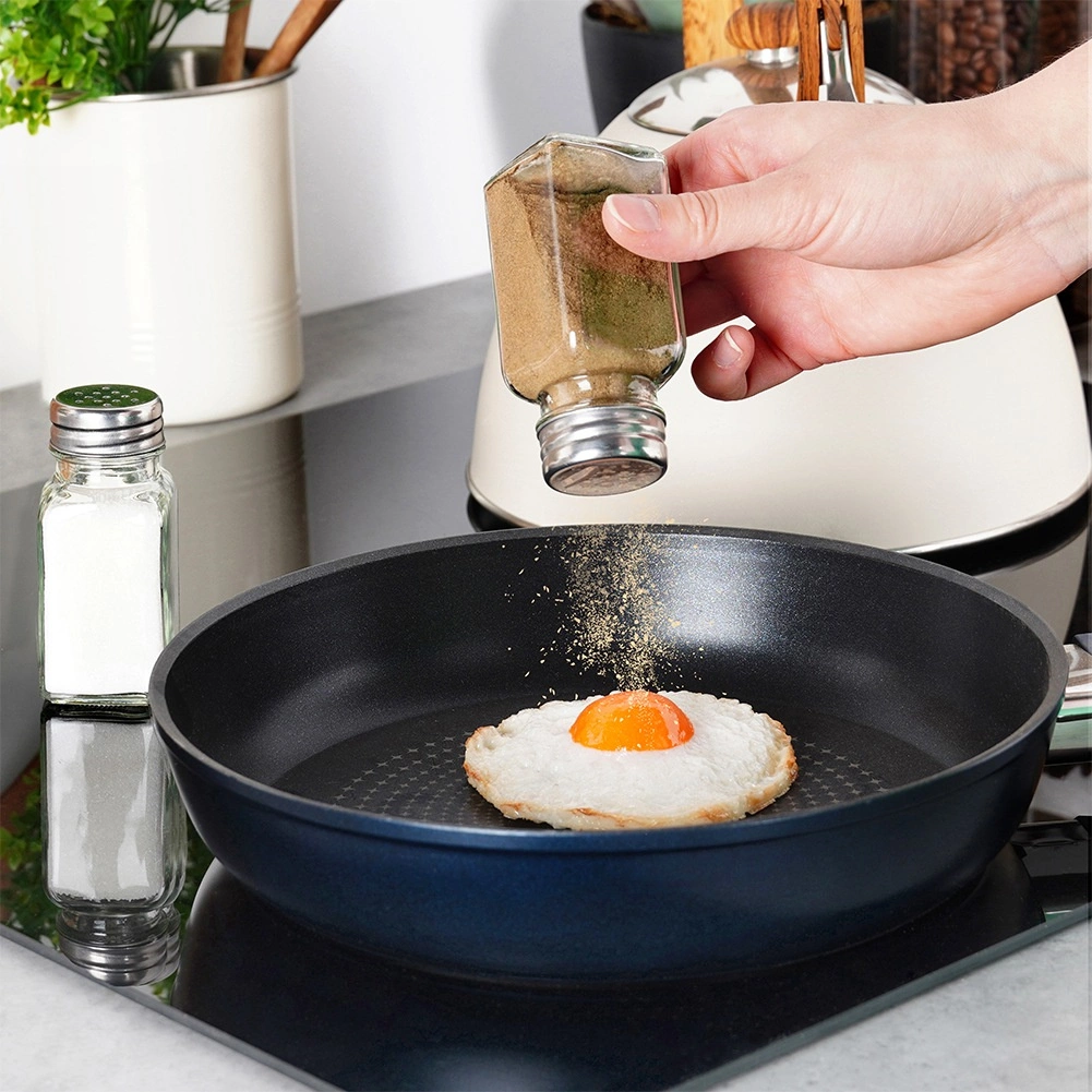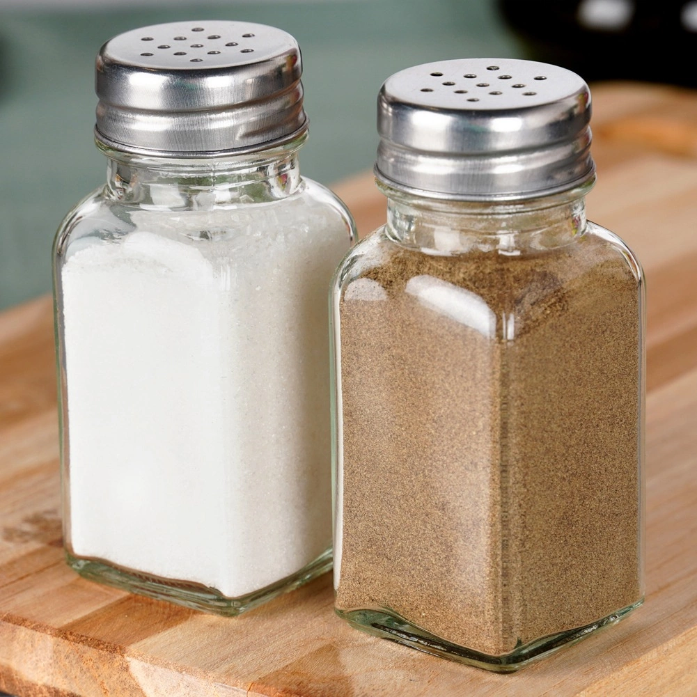 Perforowane metalowe nakrętki umożliwiają równomierne sypanie i kontrolę ilości – idealne do soli, pieprzu i drobno mielonych przypraw.