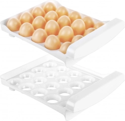 Przechowuj do 40 jaj na dwóch poziomach i oszczędzaj miejsce w lodówce. Każdy poziom mieści 20 sztuk w oddzielnych gniazdach dla maksymalnej ochrony.