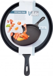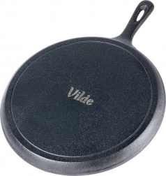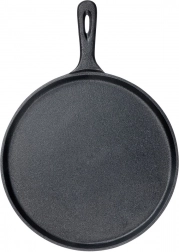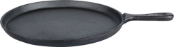 Ta żeliwna patelnia o średnicy 26 cm oferuje szeroką, niską i całkowicie płaską powierzchnię idealną do cienkich naleśników, tortilli czy placków. Żeliwo zapewnia równomierne wysmażenie i długie utrzymywanie ciepła, dzięki czemu potrawy dłużej pozostają ciepłe. Ergonomicznie wyprofilowane ucho z otworem do zawieszania ułatwia manipulację i przechowywanie.