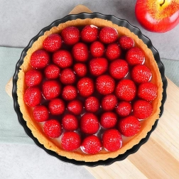 Ta okrągła forma do tarty jest idealna do domowego pieczenia tart, quiche, ciast oraz zapiekanek. Wysokiej jakości ceramika z matową czarną powłoką zapewnia stabilne przewodzenie i równomierne promieniowanie ciepła, dzięki czemu ciasto będzie równomiernie wypieczone, a nadzienie pięknie zapieczone.