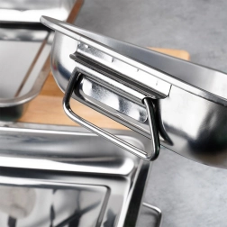 - Bezpieczna obsługa: składane uchwyty ułatwiają wyjmowanie z piekarnika.