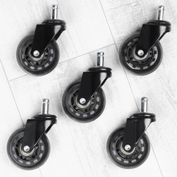Ulepsz swoje krzesło biurowe zestawem wytrzymałych kółek z kauczuku, które zapewnią cichą pracę i delikatny start na wszystkich twardych powierzchniach. Dzięki trzpieniowi o średnicy 10 mm kółka są kompatybilne z większością standardowych krzeseł oraz wybranymi modelami IKEA o tym samym typie mocowania.