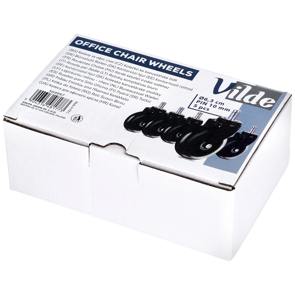 Zapasowy zestaw pięciu kółek do krzesła biurowego o średnicy 63 mm i trzpieniu 10 mm. Zapewniają cichy i płynny ruch, ochronę podłogi przed zarysowaniami oraz łatwy montaż bez narzędzi. Kompatybilne z wieloma krzesłami, w tym wybranymi modelami IKEA o tym samym wymiarze mocowania.