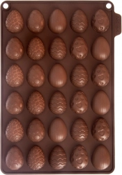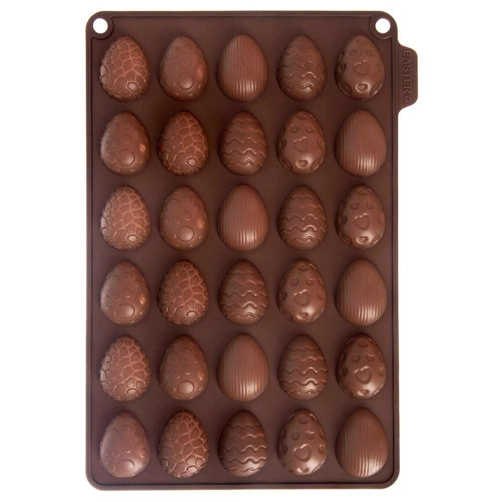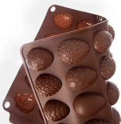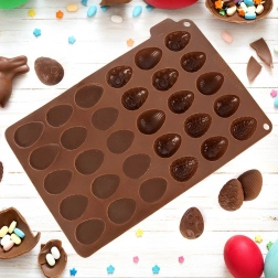 Ta wysokiej jakości silikonowa forma w kolorze brązowym pozwala łatwo przygotować domowe praliny, czekoladki i drobne wypieki w kształcie jajek. Dzięki nieprzywierającej powierzchni gotowe wyroby łatwo się wyjmuje bez konieczności natłuszczania czy podsypywania. Forma jest lekka, zajmuje mało miejsca i nie pochłania zapachów ani smaków.