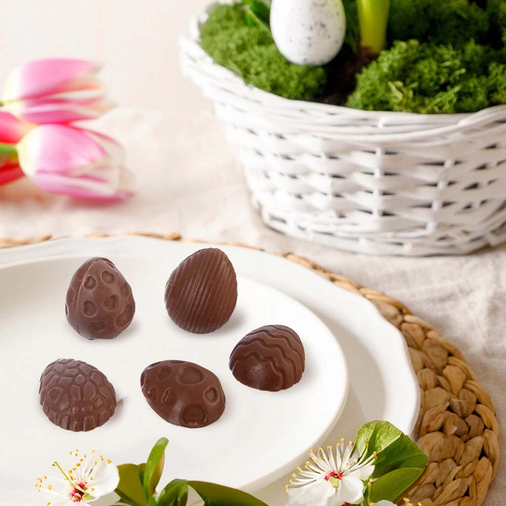 Różne tekstury i wzory na jajkach nadają domowym pralinkom profesjonalny wygląd i świąteczny klimat.
