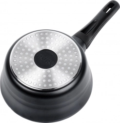 Grube dno zapewnia równomierne rozprowadzanie ciepła i szybkie nagrzewanie. Doskonały do kuchenek gazowych, elektrycznych, ceramicznych, halogenowych i indukcyjnych.