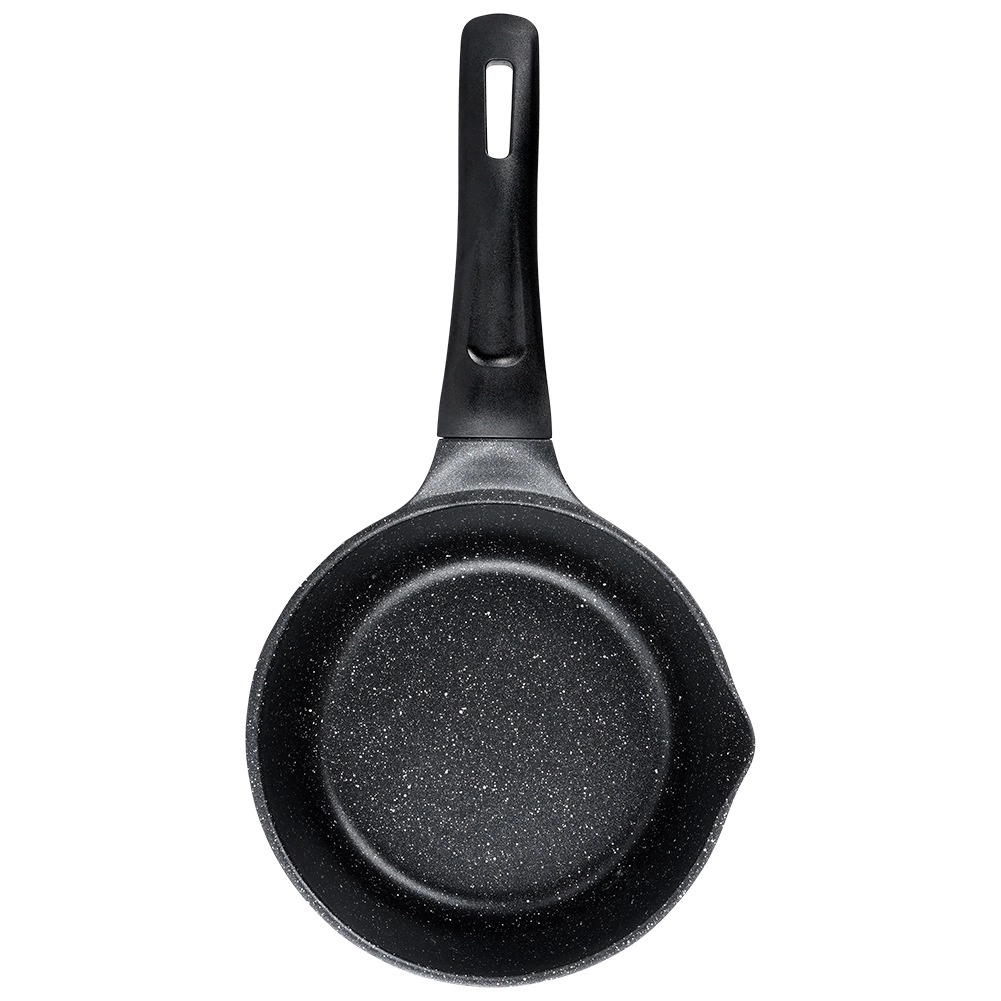 Rondel z wytrzymałego aluminium z granitową nieprzywierającą powłoką PFLUON GRANIT to doskonały wybór do przygotowywania sosów, zup, kasz lub do szybkiego podgrzewania mleka. Powłoka jest odporna na zarysowania, pozbawiona PFOA i PTFE, a także utrzymuje równomierną temperaturę na całej powierzchni. Dzięki dziobkowi do nalewania łatwo i czysto przelejesz płyny.
