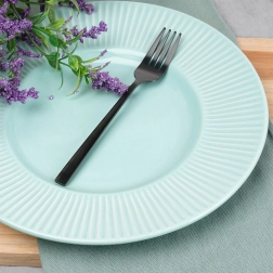 Uzupełnij nakrycie stołu stylowymi deserowymi widelczykami z matowym czarnym, satynowym wykończeniem. Dzięki wysokiej jakości stali nierdzewnej są trwałe, bezpieczne dla zdrowia i na długo zachowują elegancki wygląd. Doskonale komponują się zarówno z klasyczną, jak i nowoczesną zastawą.
