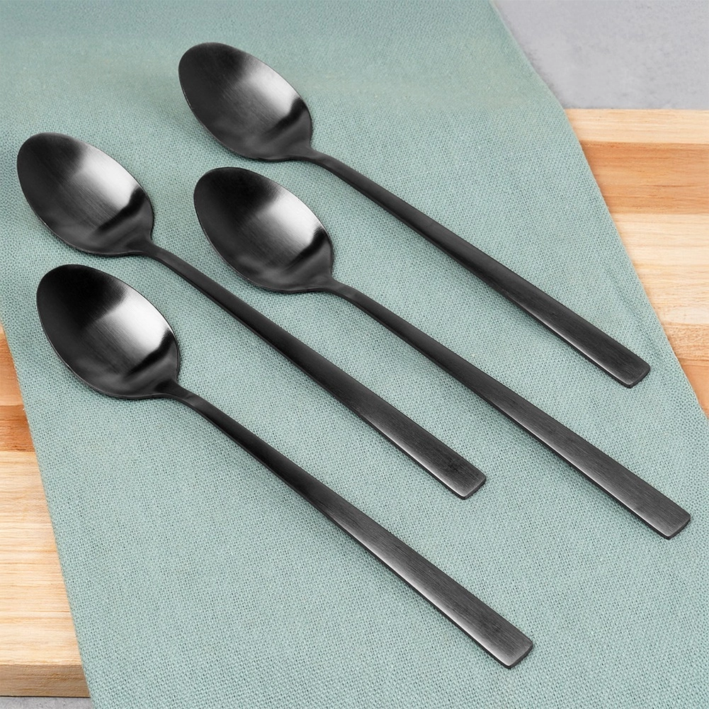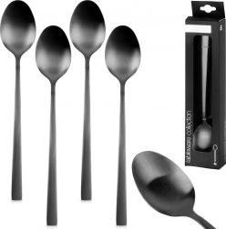 Odkryj eleganckie i praktyczne łyżeczki koktajlowe, które dzięki wydłużonemu trzonkowi wygodnie dosięgają dna wysokich szklanek. Matowe czarne, satynowe wykończenie nada Twojej aranżacji stołu nowoczesny charakter i świetnie komponuje się zarówno z klasycznym, jak i minimalistycznym wystrojem.