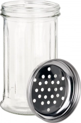 Praktyczny szklany pojemnik na przyprawy o pojemności 350 ml z nierdzewną pokrywką z otworami dla wygodnego i kontrolowanego dozowania. Wykonany z wytrzymałego, grubego szkła, które jest przezroczyste dla łatwej kontroli zawartości. Idealny na sól, pieprz, zioła czy cukier, odpowiedni do użytku domowego i gastronomii oraz można myć w zmywarce.