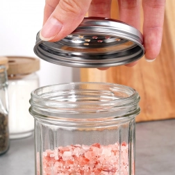 Perforowana metalowa pokrywka umożliwia precyzyjne dozowanie przypraw i zapobiega przypadkowemu wysypaniu zbyt dużej ilości.