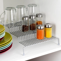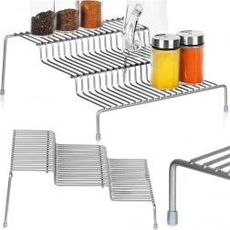 Trzystopniowa nadstawka półkowa zapewnia lepszy przegląd i natychmiastowy dostęp do przechowywanych rzeczy – koniec z ukrytymi przyprawami czy kubkami w tylnej części szafki. Otwarta druciana konstrukcja z wytrzymałego metalu jest stabilna, przewiewna i łatwa w utrzymaniu.