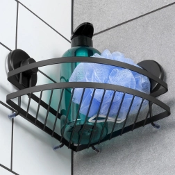 Ta narożna półka prysznicowa łączy minimalistyczny design z wysoką funkcjonalnością. Metal malowany proszkowo w matowej czerni jest trwały, łatwy do czyszczenia i doskonale wpasowuje się w nowoczesne i klasyczne łazienki. Dzięki dwóm dużym przyssawkom bezpiecznie zamocujesz ją na gładkich powierzchniach, takich jak płytki czy szkło – bez wiercenia i uszkadzania ścian.
