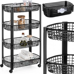 Wytrzymała, plastikowa konstrukcja w czarnym kolorze łączy lekkość i solidność. Regał jest łatwy w montażu, a w razie potrzeby można go zdemontować do kompaktowych rozmiarów. Sprawdzi się w kuchni na słoiki, przyprawy i zapasy, w łazience na ręczniki i kosmetyki, w biurze na drobiazgi oraz w garażu na narzędzia.