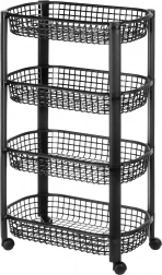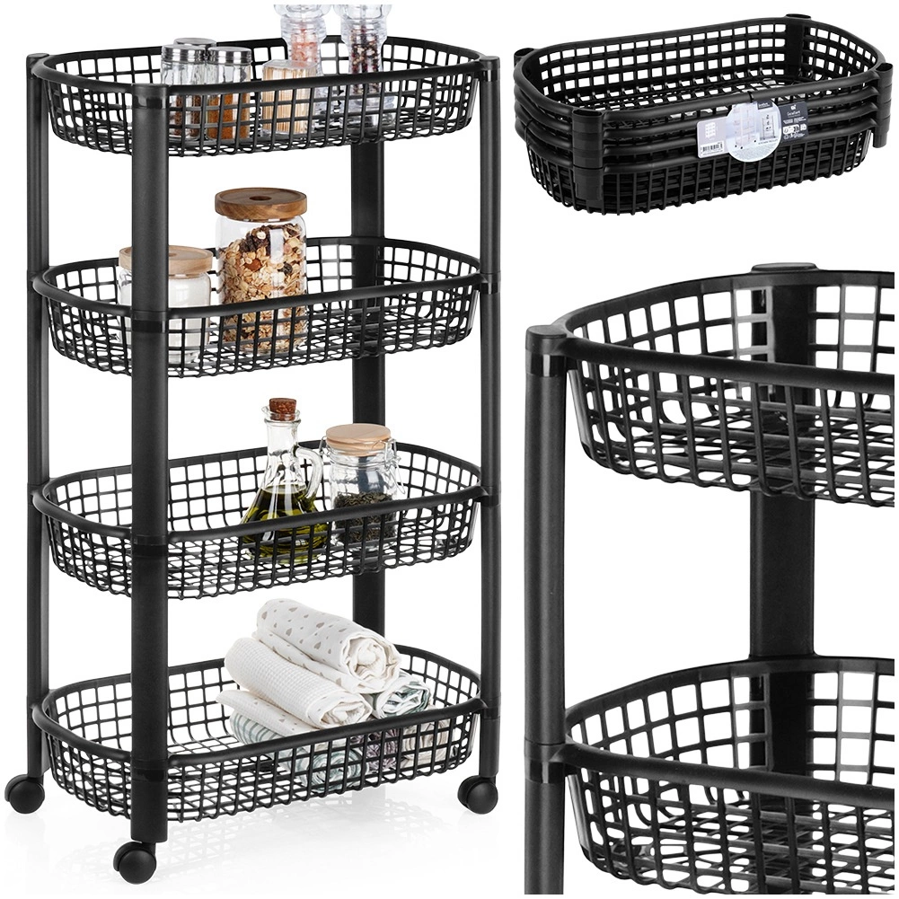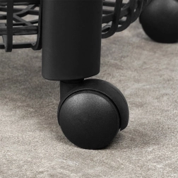 Maksymalizuj przestrzeń do przechowywania na małej powierzchni. Ten smukły regał o wymiarach 46,5 × 26 × 79 cm ma cztery praktyczne koszyki (46,5 × 26 × 7,5 cm), które dzięki otwartej, ażurowej strukturze zapewniają przejrzystość i cyrkulację powietrza. Dzięki czterem kółkom wózek łatwo przemieszczać między pomieszczeniami; dwa kółka mają hamulec dla bezpiecznego unieruchomienia w miejscu.