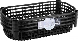 Koszyki o ażurowej strukturze zapewniają cyrkulację powietrza i dobrą widoczność zawartości. Lekki, a jednocześnie solidny materiał w czarnym kolorze łatwo się czyści.