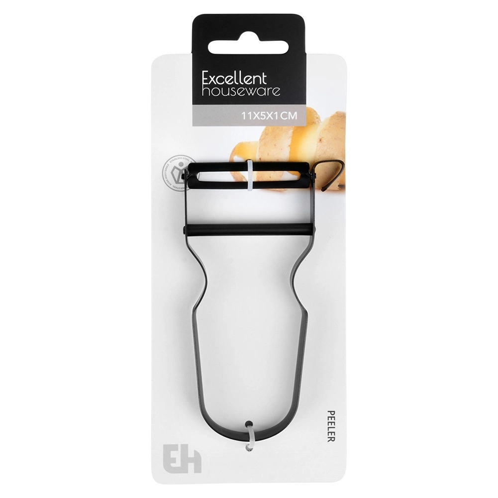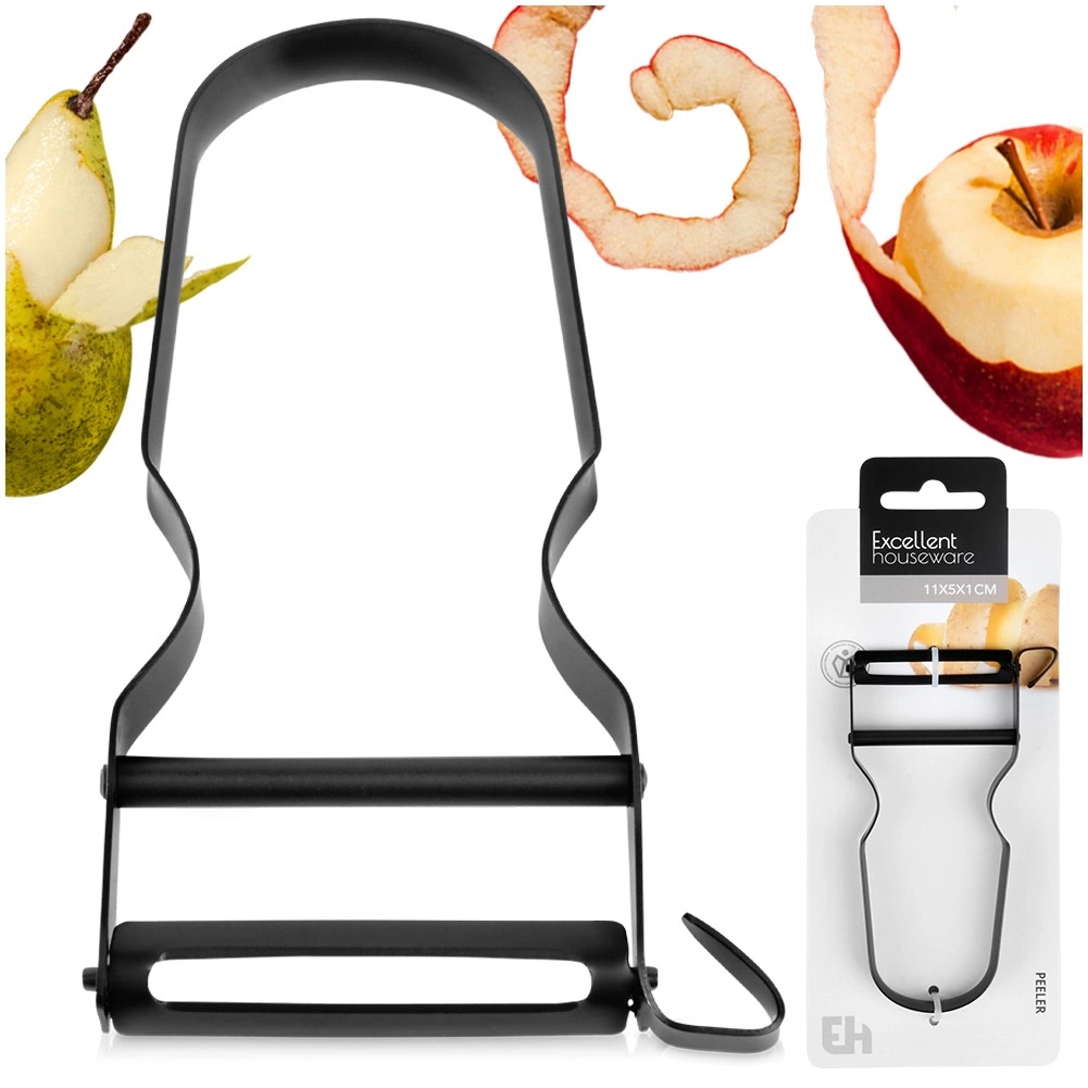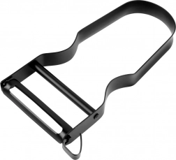 Praktyczny obierak w kształcie Y o wymiarach 11,5 × 5,3 × 1 cm z długością ostrza 5 cm poradzi sobie ze skórkami ziemniaków, marchwi, jabłek czy ogórków. Korpus ze stali nierdzewnej z trwałą powłoką malowaną proszkowo w matowej czerni zapewnia długą żywotność i nowoczesny wygląd.