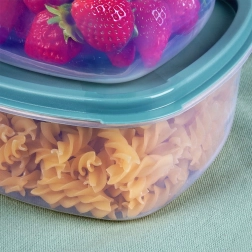 Pojemniki wykonano z wytrzymałego plastiku bezpiecznego w kontakcie z żywnością. Pokrywki dobrze przylegają i pomagają utrzymać świeżość i aromat. Sprawdzą się w domu, w pracy i w podróży. Uwaga outlet: w jednym pojemniku o pojemności 1,9 l pokrywka z powodu wady produkcyjnej gorzej pasuje.