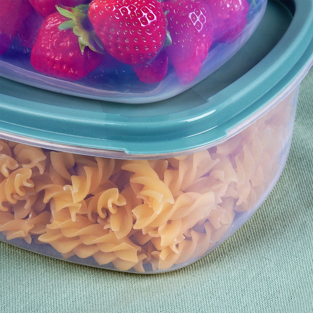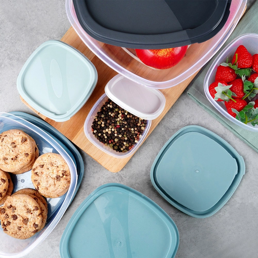 Ten uniwersalny zestaw pojemników oferuje sześć rozmiarów (225 ml, 375 ml, 650 ml, 1,125 l, 1,9 l i 3,2 l), więc zawsze znajdziesz odpowiedni do przygotowywania posiłków, przechowywania resztek lub składowania produktów suchych. Przezroczyste korpusy umożliwiają natychmiastową kontrolę zawartości bez otwierania, a kolorowe pokrywki ułatwiają organizację.