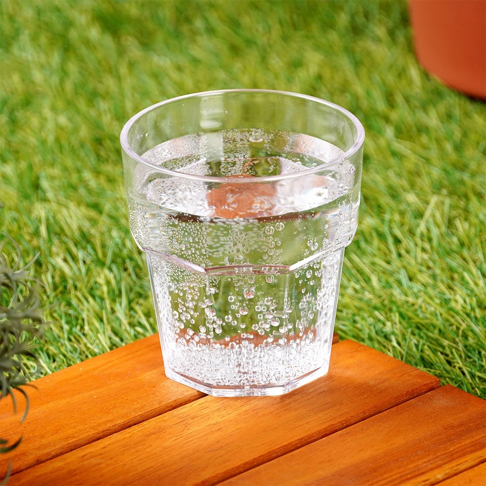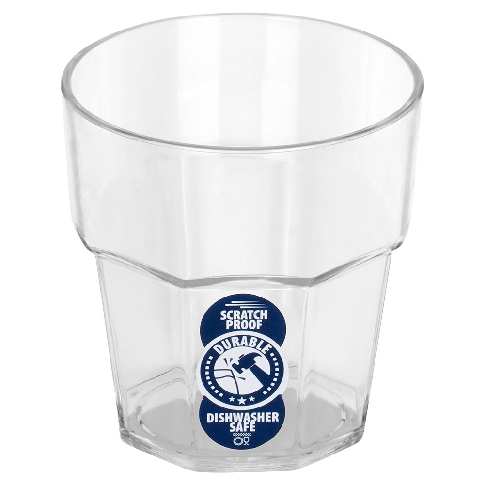 Praktyczny kubek o pojemności 275 ml, wysokości ok. 8,5 cm i średnicy 8 cm wykonany z wysokiej jakości przezroczystego akrylu. Oferuje elegancki wygląd szkła, z zaletą większej odporności na stłuczenie. Świetnie sprawdzi się do wody, lemoniady, soków, drinków i mrożonej herbaty.