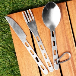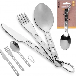 Sztućce wykonane są z wysokiej jakości stali nierdzewnej odpornej na korozję, która sprosta wymagającym warunkom biwakowym i długotrwałemu użytkowaniu.