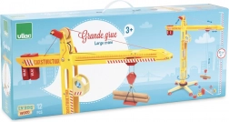 Odkryj duży drewniany dźwig VILAC, który zamieni każdy dziecięcy pokój w tętniący życiem plac budowy. Oferuje pełny obrót, podnoszenie i przesuwanie ładunków za pomocą dwóch pokręteł, stabilną szeroką podstawę oraz bogate akcesoria, w tym magnes, figurki i ładunki. Solidne połączenie litego drewna i sklejki z bezpiecznymi farbami gwarantuje długą żywotność i bezpieczną zabawę.