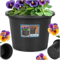 Czarna okrągła doniczka o średnicy 23 cm i wysokości 16,5 cm to doskonały wybór do uprawy roślin oraz jako osłonka dekoracyjna. Dzięki odporności na warunki atmosferyczne możesz bez obaw używać jej na zewnątrz przez cały rok – nie szkodzi jej deszcz, wiatr ani promienie słoneczne.