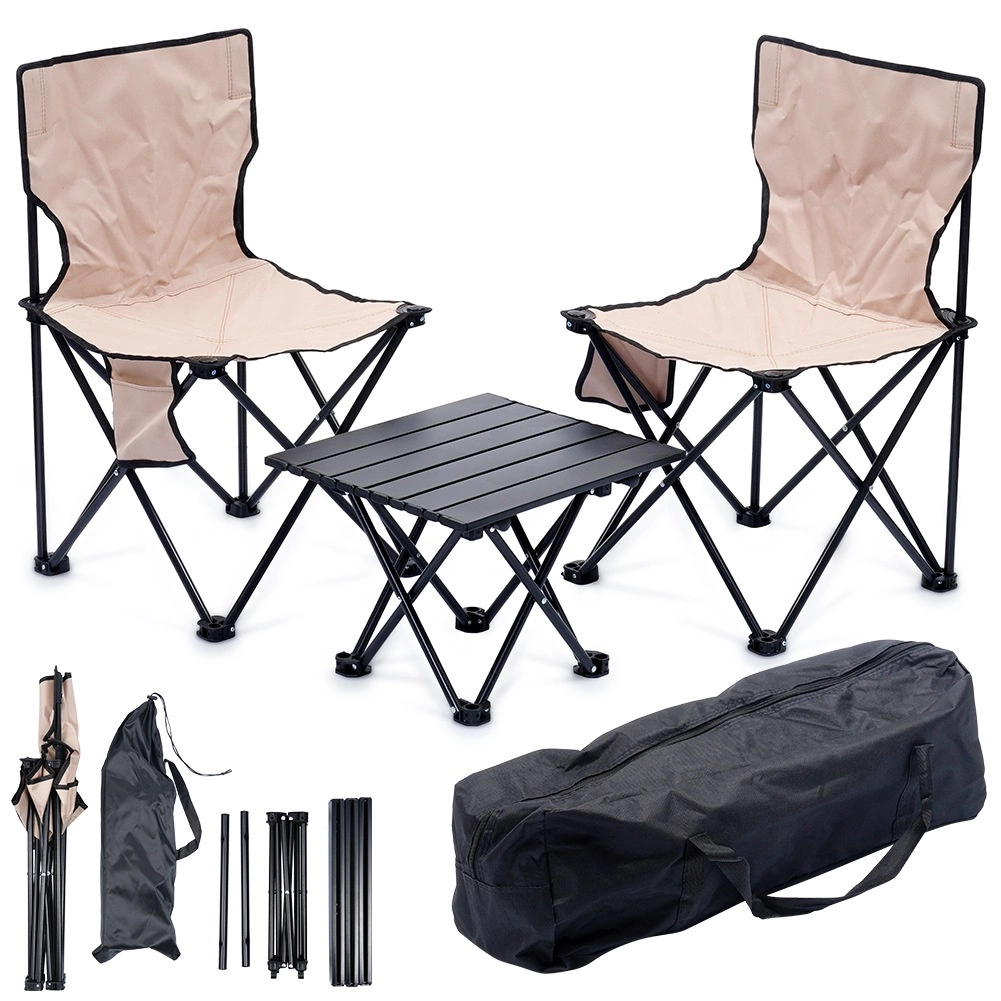 Dwa składane krzesła i wytrzymały składany stolik tworzą wygodne miejsce do siedzenia oraz odkładania napojów i drobiazgów – kiedy chcesz i gdzie chcesz.