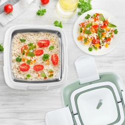 Pokrywka z czterema solidnymi klipsami i zaworem upustowym zapewnia szczelność i łatwe otwieranie bez wysiłku.