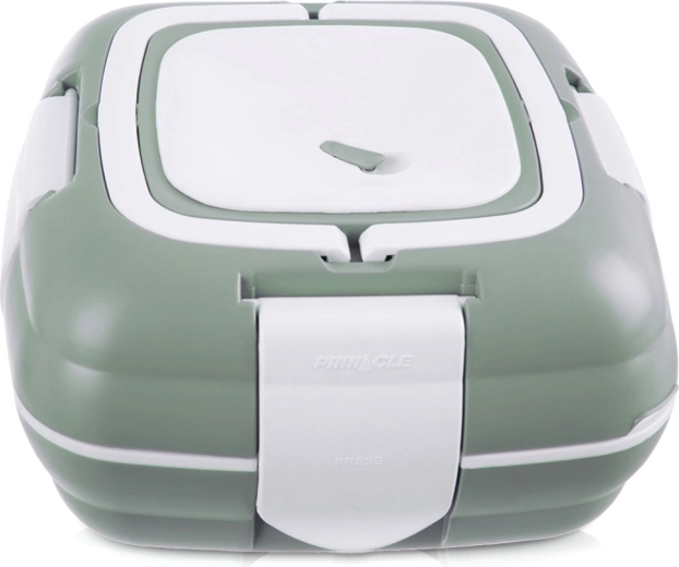 - Tworzywo (kolor miętowy), białe klipsy i elementy pokrywki