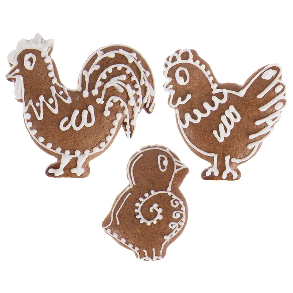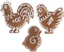Kogut, kurka i pisklę stworzą uroczy zestaw ciastek i pierniczków. Idealne do świątecznego pieczenia i dziecięcej twórczości.