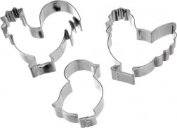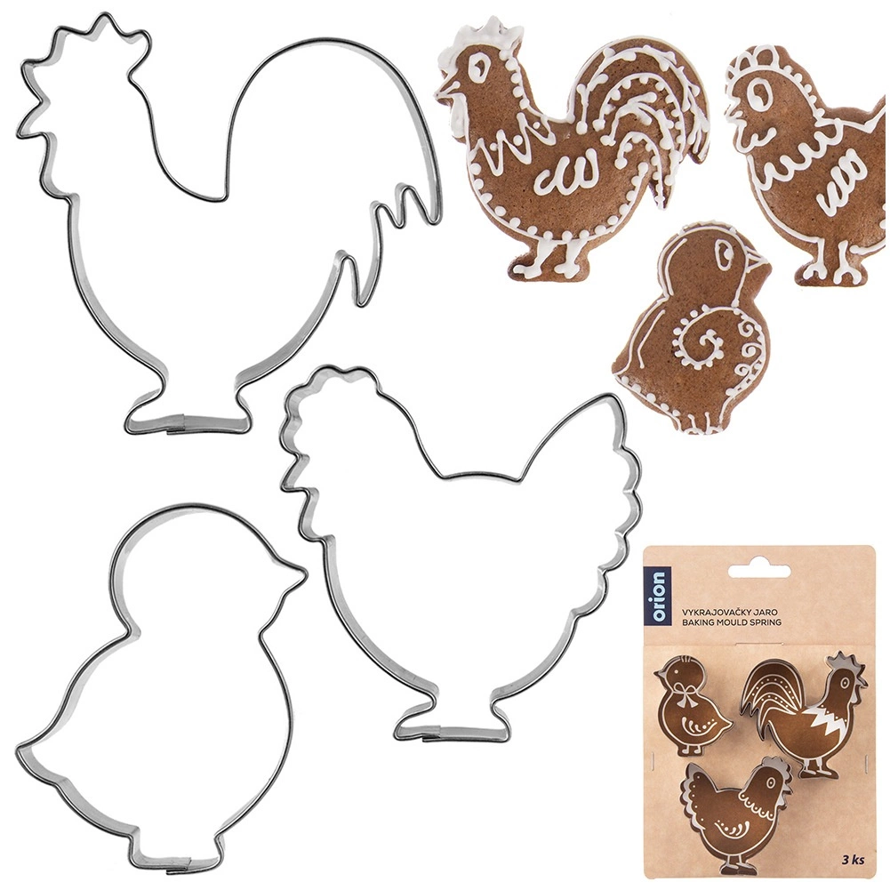 Odkryj kreatywny zestaw 3 foremek, dzięki któremu łatwo wyczarujesz ciastka, pierniczki i dekoracje cukiernicze w kształcie koguta, kurki i pisklęcia. Wysokiej jakości stal nierdzewna gwarantuje długą żywotność, czyste cięcia i łatwą pielęgnację – po pieczeniu wystarczy włożyć je do zmywarki.