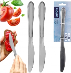 Elegancki zestaw dwóch stołowych noży z wysokiej jakości stali nierdzewnej do codziennego użytku i odświętnego nakrycia stołu. Noże mają długość 22 cm, są polerowane na wysoki połysk i zapewniają wygodne krojenie dzięki delikatnie ząbkowanej krawędzi. Są trwałe, łatwe w czyszczeniu i odpowiednie do zmywarki, doskonale komponują się z klasyczną i nowoczesną zastawą.