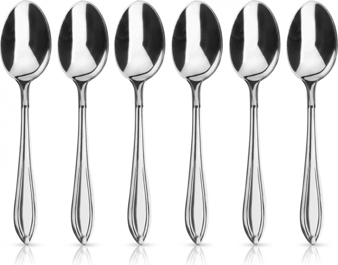Praktyczny zestaw sześciu łyżeczek, który uzupełni każdy komplet stołowy i podniesie wygląd nakrycia. Błyszczące wykończenie prezentuje się elegancko, a uniwersalny design pasuje do zestawów klasycznych i nowoczesnych. Idealne do serwowania kawy, herbaty i deserów.