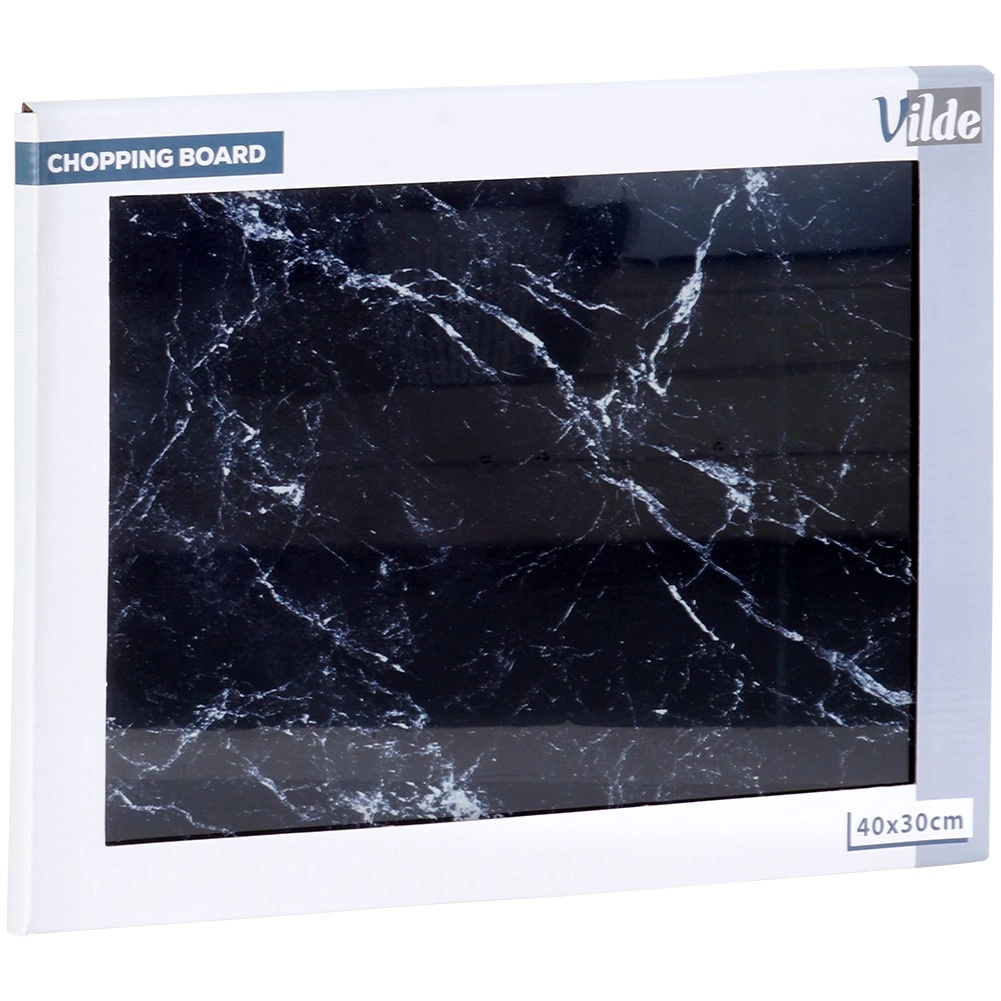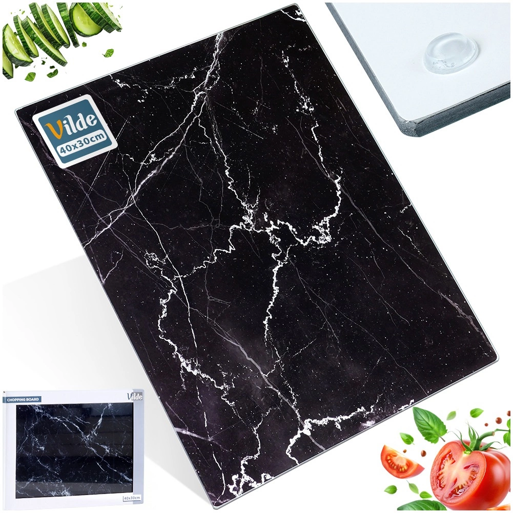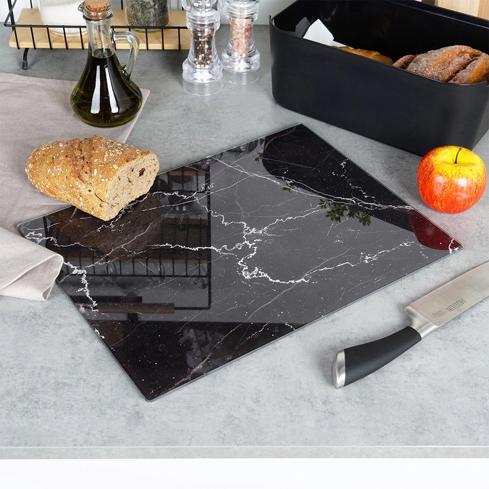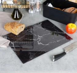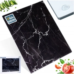 Deska wykonana jest z wysokiej jakości szkła hartowanego, które jest higieniczne, nieporowate i łatwe do czyszczenia. Czarny marmurowy dekor doda Twojej kuchni stylu.