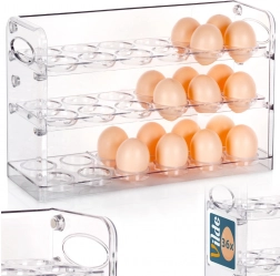 Przemyślane trzypoziomowe rozwiązanie mieści duży zapas jaj, jednocześnie oszczędzając miejsce w lodówce. Każdy poziom bezpiecznie pomieści 12 sztuk.
