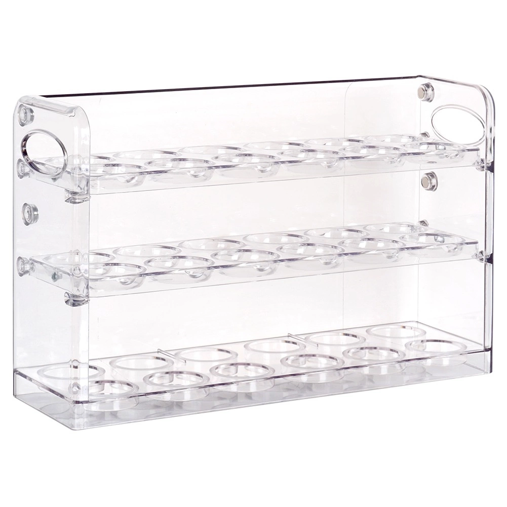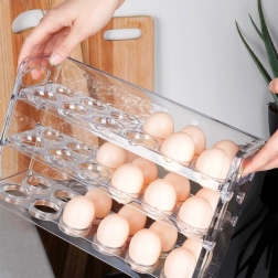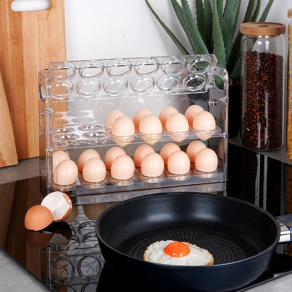 Każdy poziom ma precyzyjnie wyprofilowane gniazda na jajka, co minimalizuje ryzyko uszkodzeń. Konstrukcja umożliwia wygodny dostęp do niższych poziomów, gdy górny jest pusty. Organizer jest wielokrotnego użytku, higieniczny i stanowi bardziej ekologiczną alternatywę dla papierowych wytłaczanek.