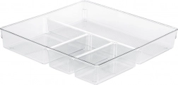 Zadbaj o porządek w każdej szufladzie. Przezroczysty organizer z przegrodami pomaga szybko posegregować kosmetyki, artykuły biurowe, przybory toaletowe czy kuchenne dodatki. Cztery różnej wielkości przegródki zapewniają przejrzystość i łatwy dostęp do rzeczy, których używasz najczęściej.