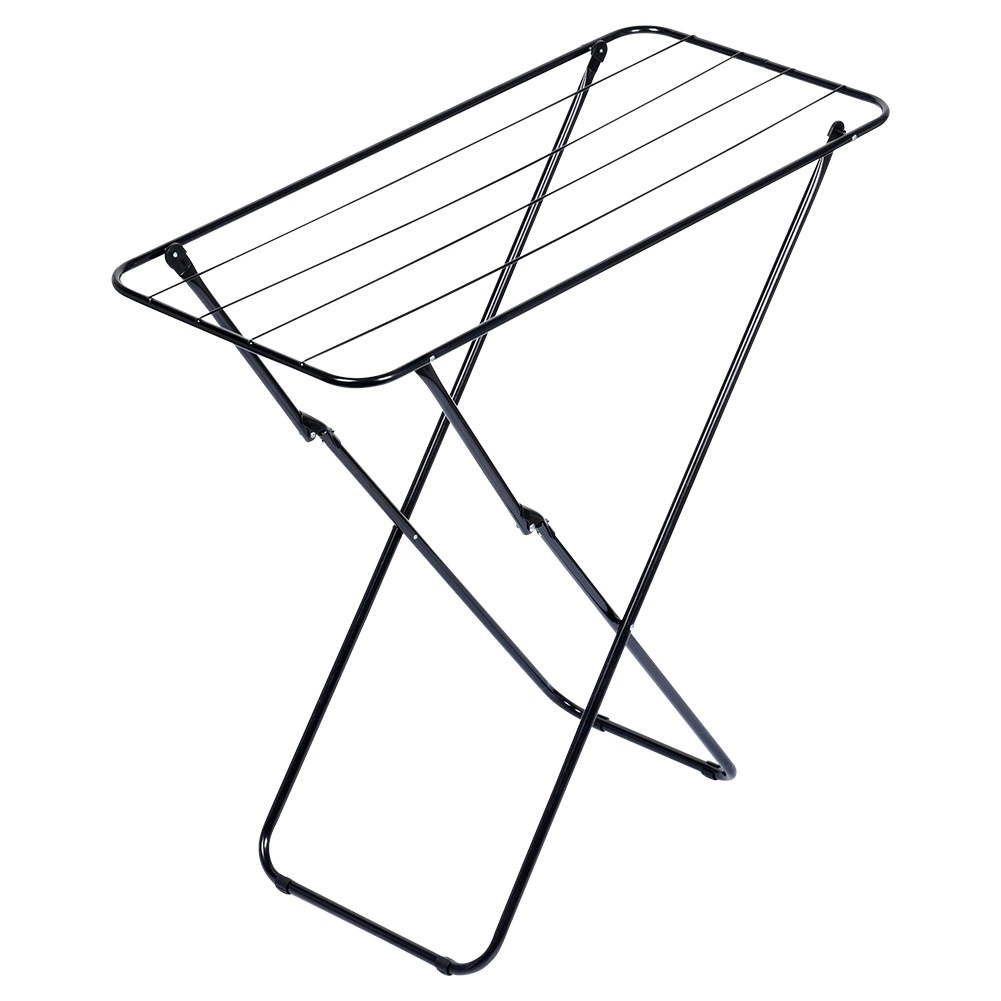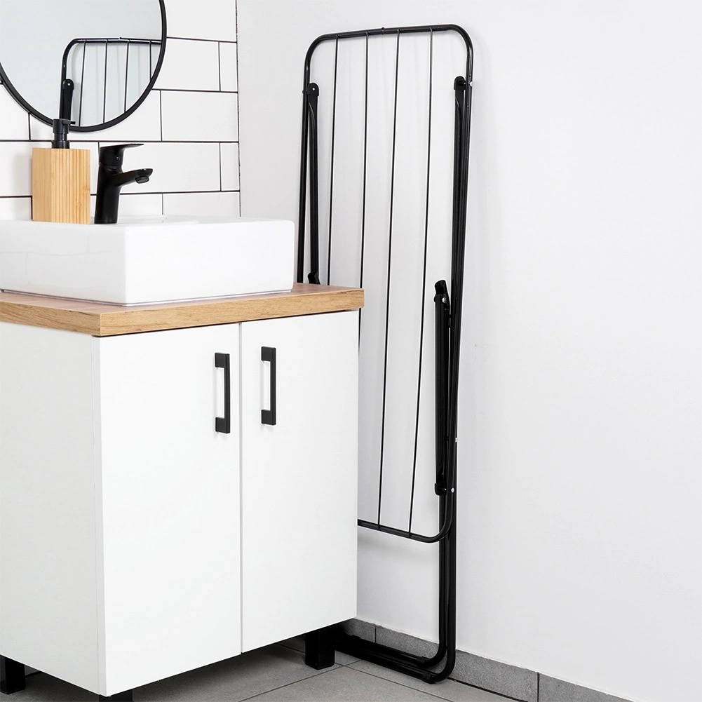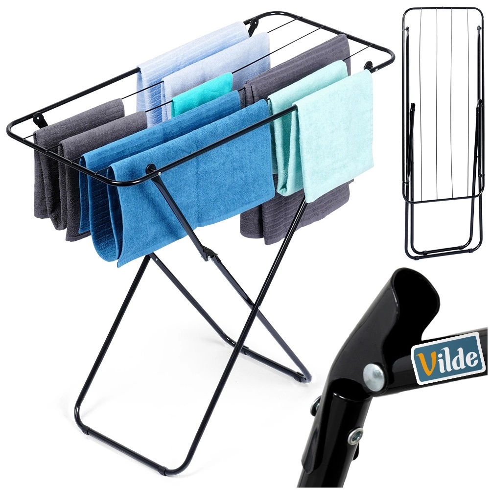 Elegancka czarna suszarka na pranie to idealny wybór do mieszkań, domów i na balkony. Metalowa konstrukcja z malowaniem proszkowym zapewnia długą żywotność i stabilność, a kompaktowe wymiary ułatwiają codzienne użytkowanie i przechowywanie. Dzięki składanemu stelażowi w kształcie X złożysz ją na płasko w kilka chwil.