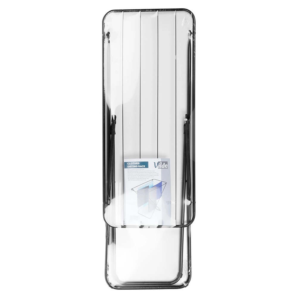 Prosty mechanizm umożliwia szybkie złożenie suszarki do wymiaru około 121 × 43 × 4,5 cm i łatwe przechowywanie za drzwiami lub w szafie.