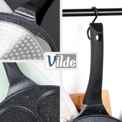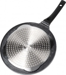Dzięki aluminiowemu korpusowi ciepło rozchodzi się szybko i równomiernie, co oszczędza czas i energię. Wygodny uchwyt soft touch nie nagrzewa się i ma otwór do zawieszenia, więc patelnię łatwo przechowasz, oszczędzając miejsce w kuchni.