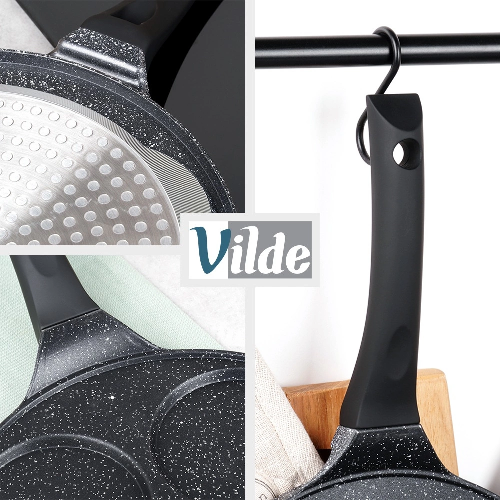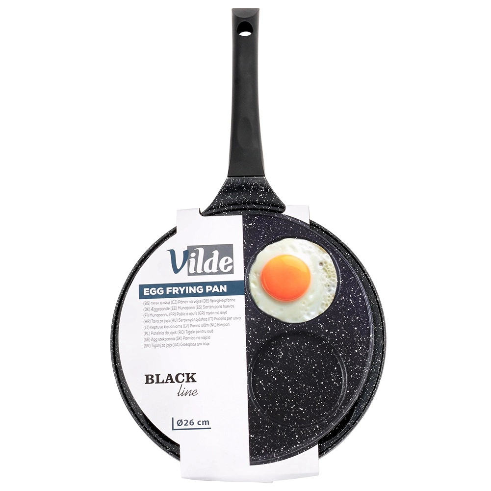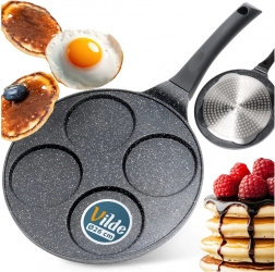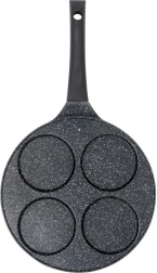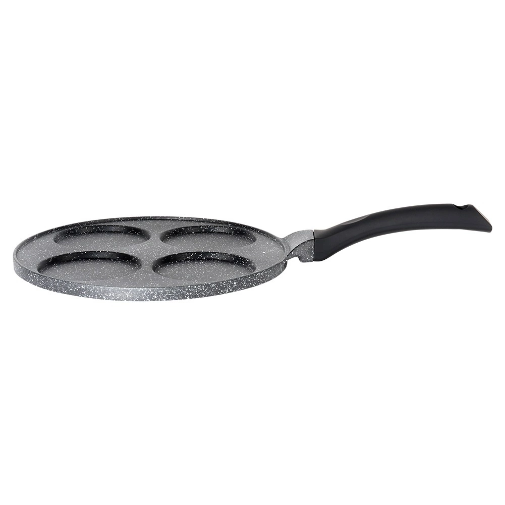 Ta elegancka patelnia z linii BLACK LINE o średnicy 26 cm ma cztery płytkie, okrągłe formy idealne do jajek, placuszków i mini naleśników. Granitowa, nieprzywierająca powłoka pozwala gotować zdrowiej z mniejszą ilością oleju oraz ułatwia serwowanie i czyszczenie.