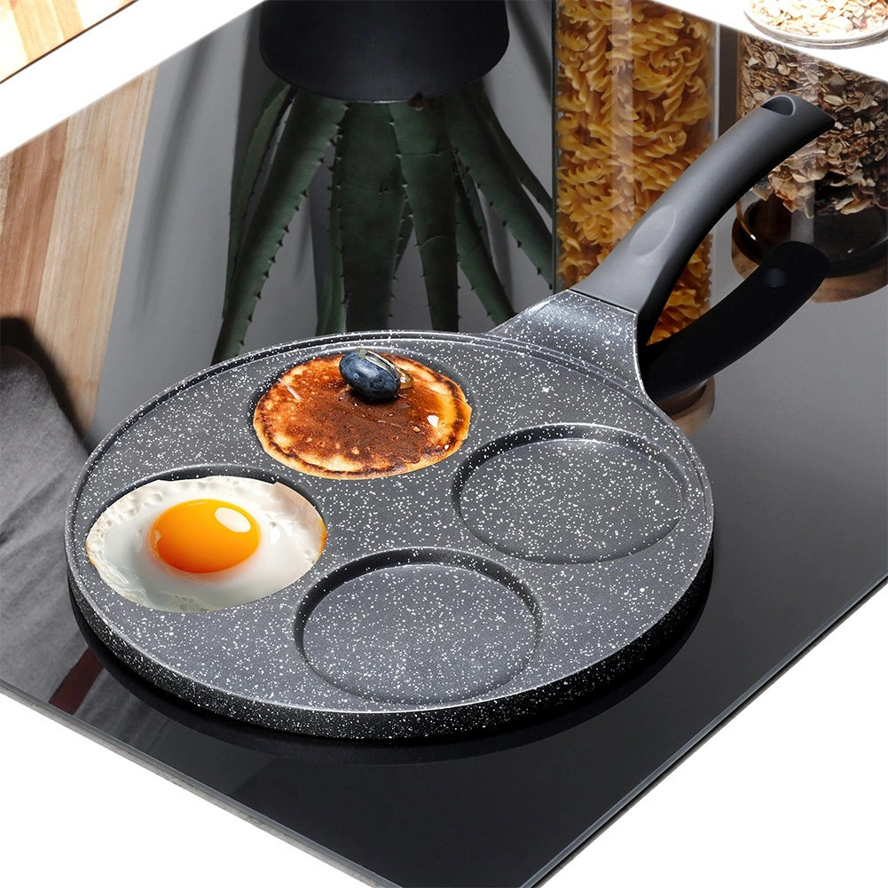 Cztery okrągłe otwory o średnicy 9 cm gwarantują równomiernie uformowane jajka, placuszki i mini naleśniki bez wysiłku.