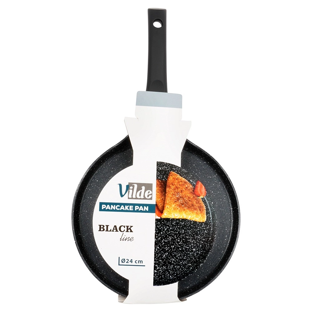 Ciesz się bezproblemowym smażeniem z patelnią do naleśników Black Line 24 cm. Granitowa, nieprzywierająca warstwa zapewnia łatwe przewracanie i podawanie, a niski rant oraz szeroka, płaska podstawa pomagają w równomiernym wypiekaniu. Ergonomiczny uchwyt z powierzchnią soft-touch przyjemnie leży w dłoni i pozostaje chłodny.